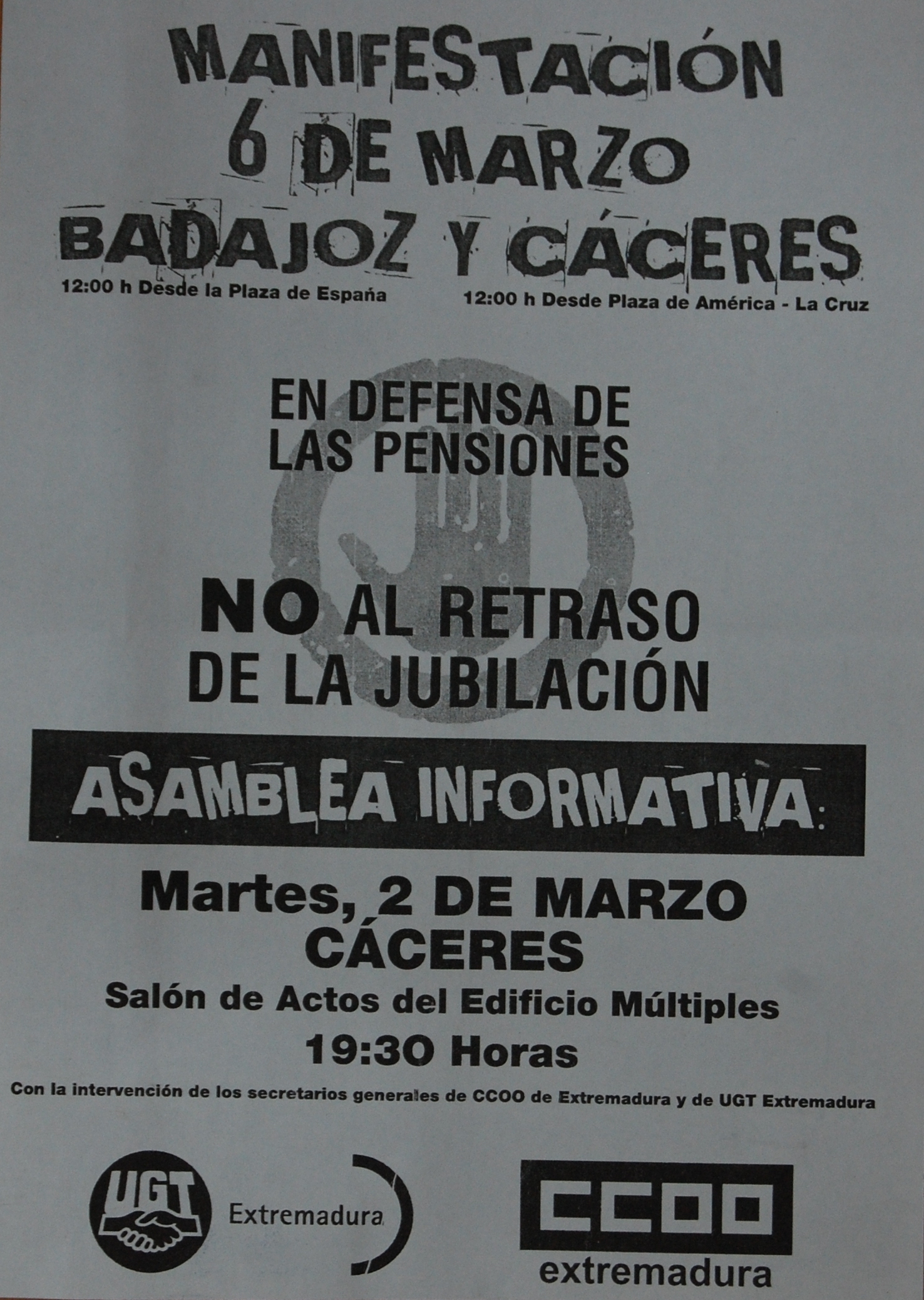 Materias: Cáceres, Asambleas, Comisiones Obreras de Extremadura, Unión General de Trabajadores de Extremadura