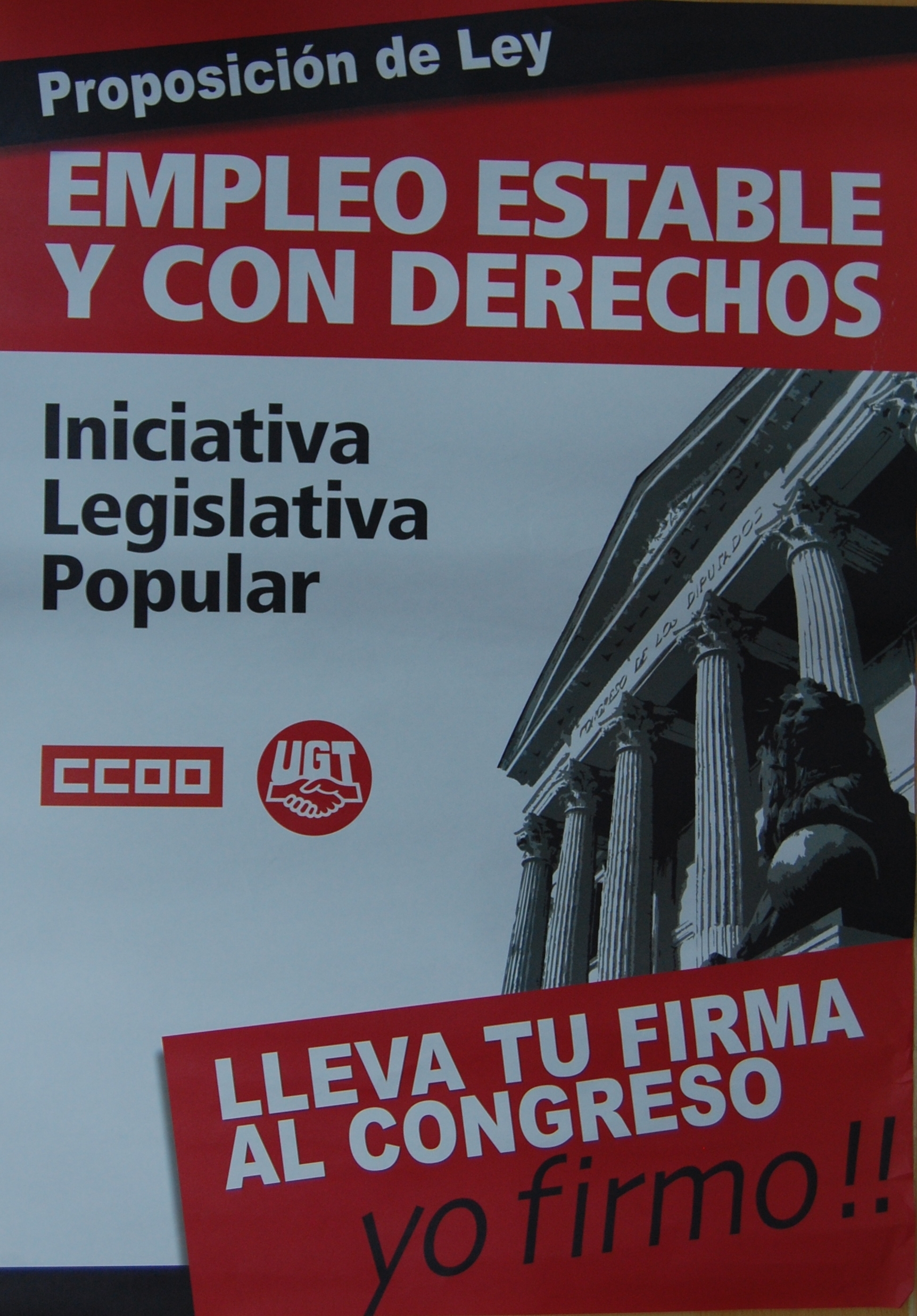 Materias: Empleo, Comisiones Obreras, Unión General de Trabajadores, Derechos laborales, Iniciativa legislativa popular