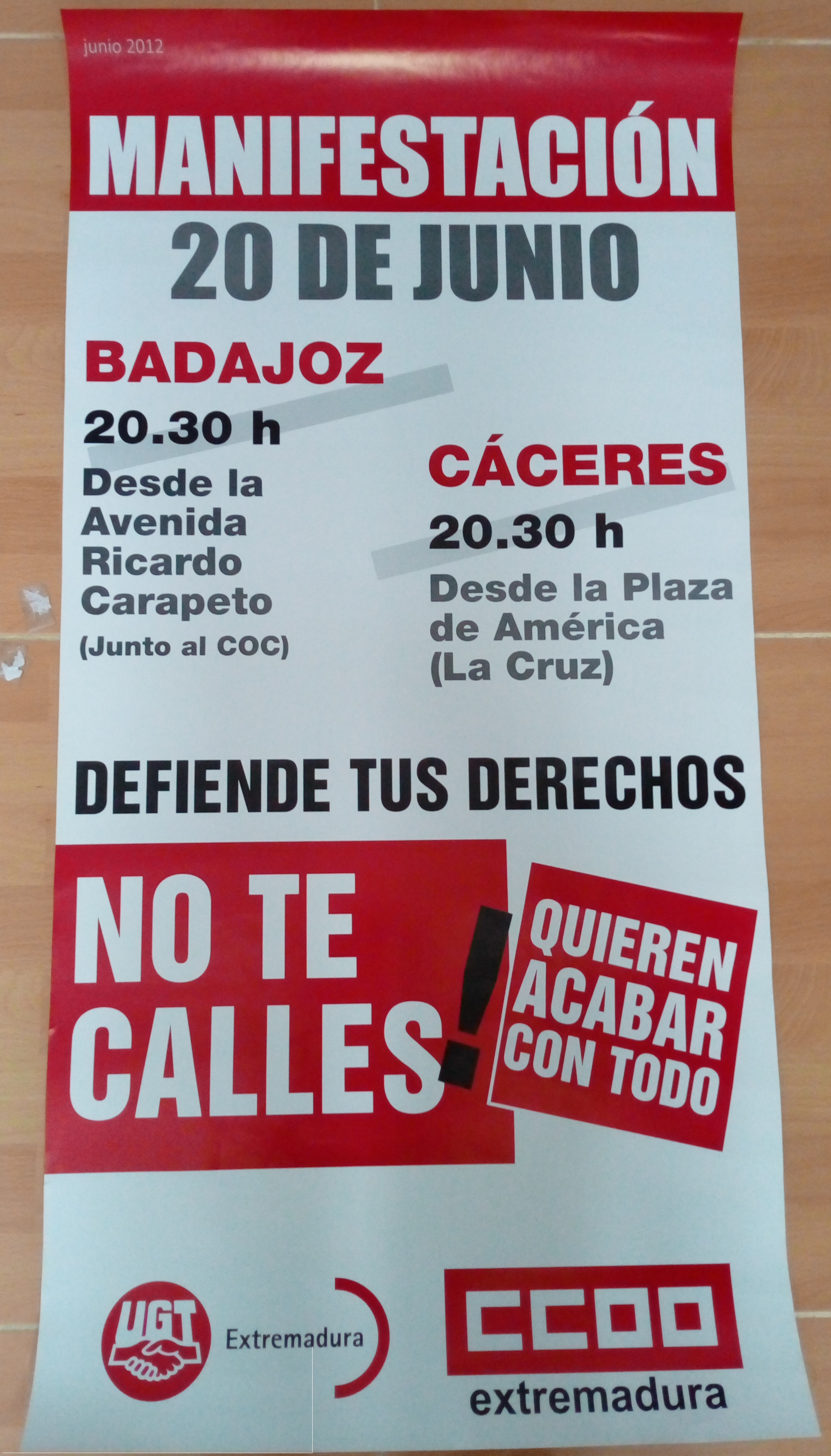 Materias: Cáceres, Badajoz, Manifestaciones, Comisiones Obreras de Extremadura, Unión General de Trabajadores de Extremadura