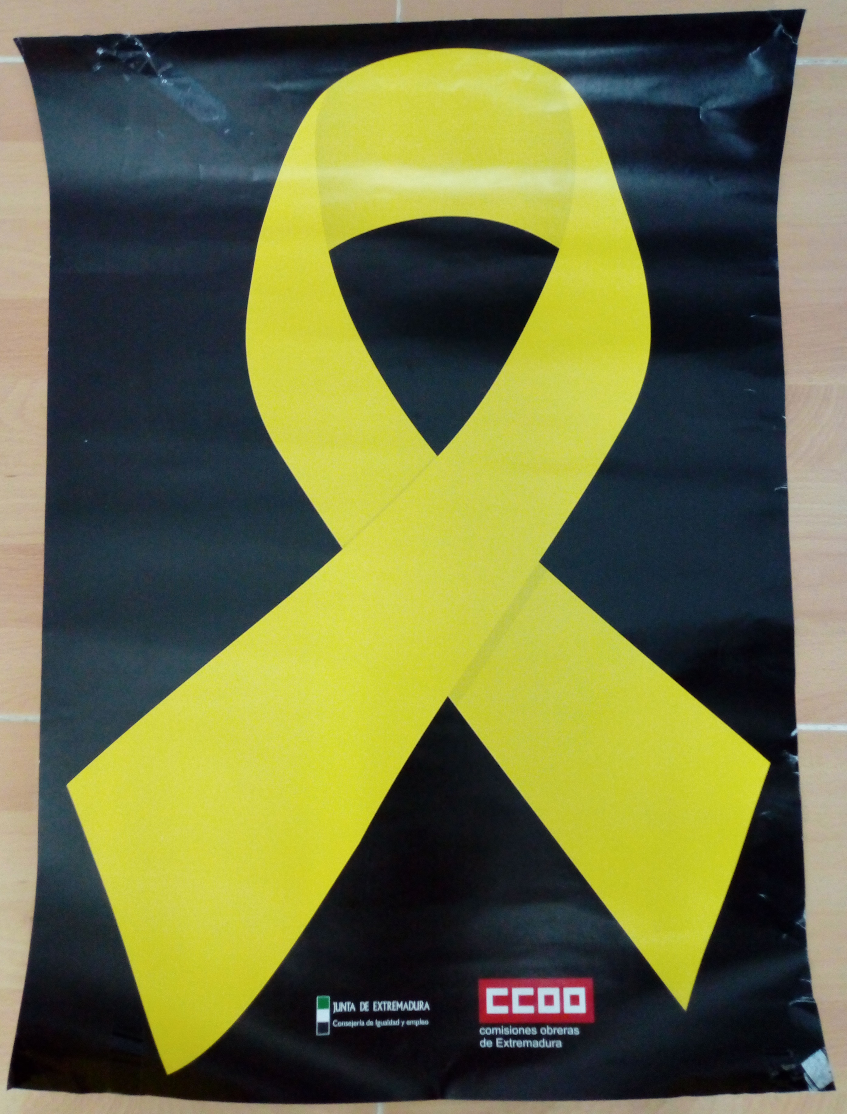 Descripción: Fondo negro con un lazo amarillo, símbolo del compromiso por la seguridad y la salud en el trabajo y en recuerdo de las personas que murieron trabajando.